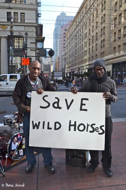 SAN FRANCISCO, Ca. (January 10, 2014)–Concerned Americans protest in downtown San Francisco against slaughtering domestic and wild horses for human consumption in foreign countries. They stand with Attorney General Gary King in New Mexico who is fighting against horse slaughter plants opening in the West. King’s case will be heard in court Monday.